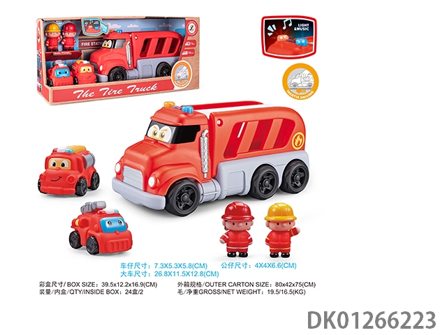 Fire truck set with lighting and music, including electricity 3 * ag13