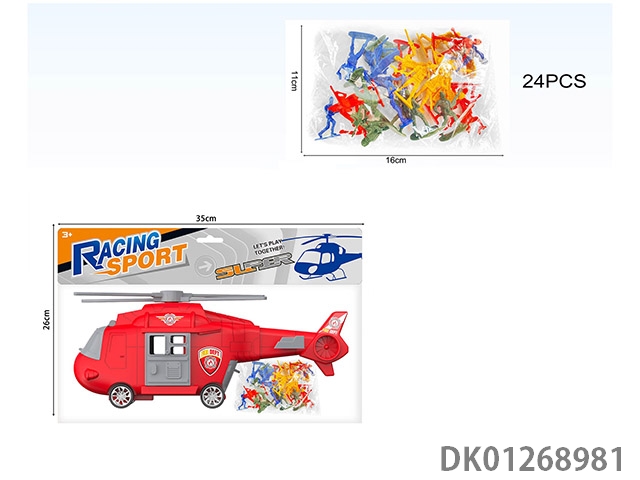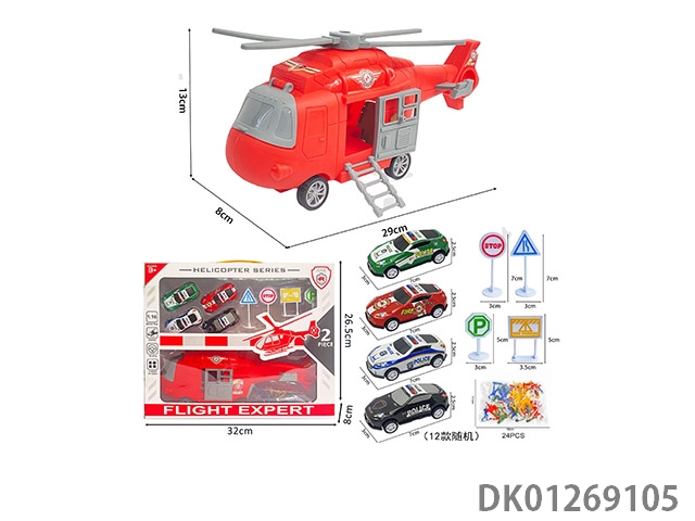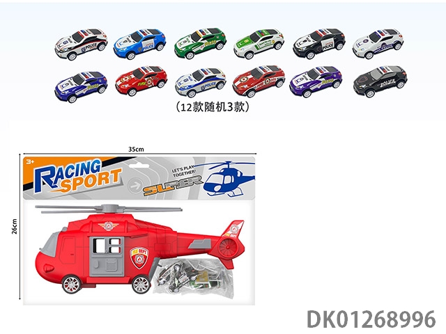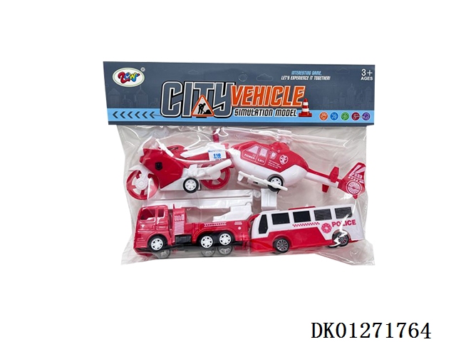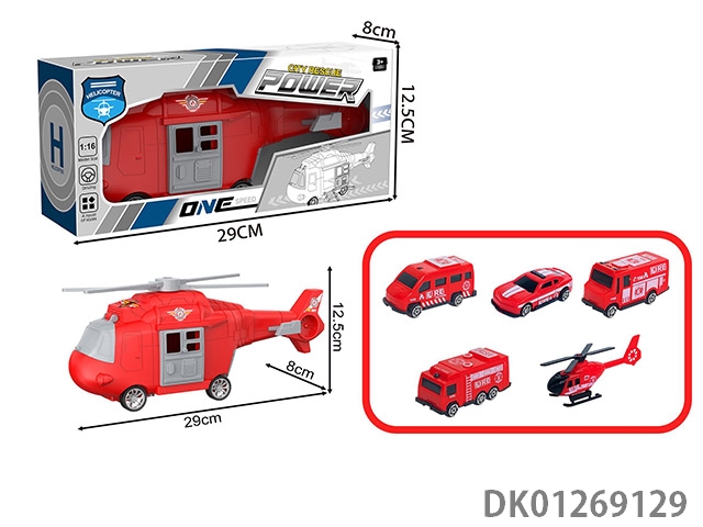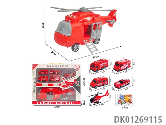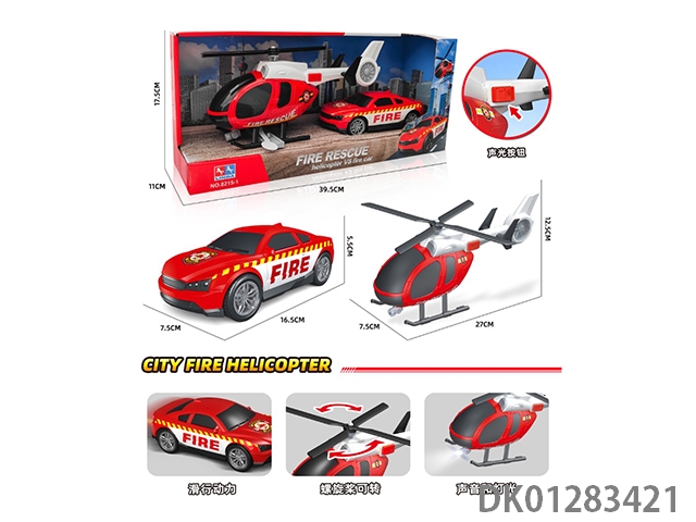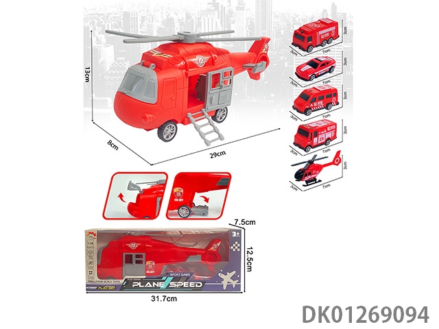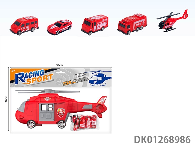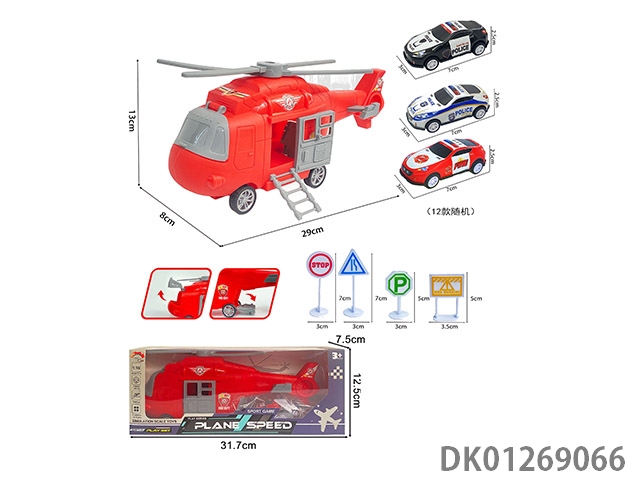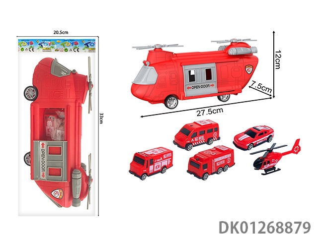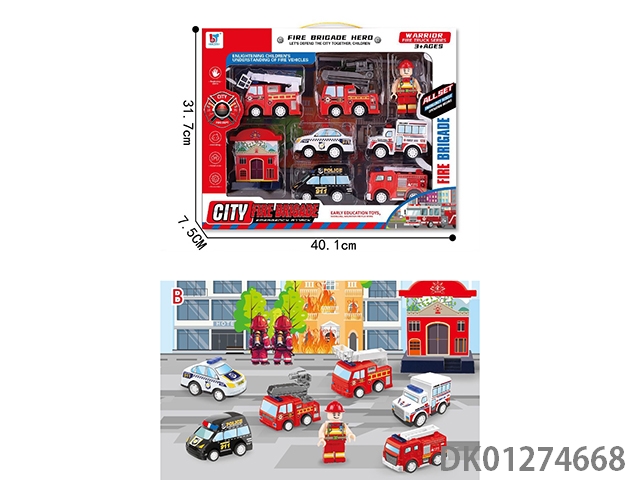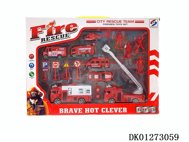 2 Solid color sliding fire trucks equipped with firefighters and road sign fire sliding truck sets