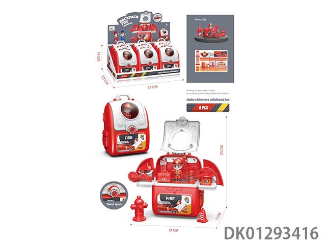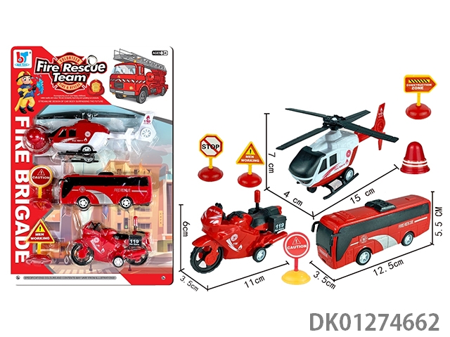 2 Solid color sliding fire trucks equipped with firefighters and road sign fire sliding truck sets