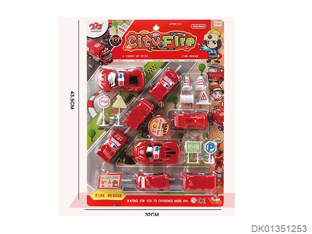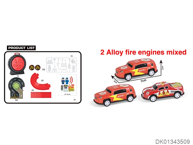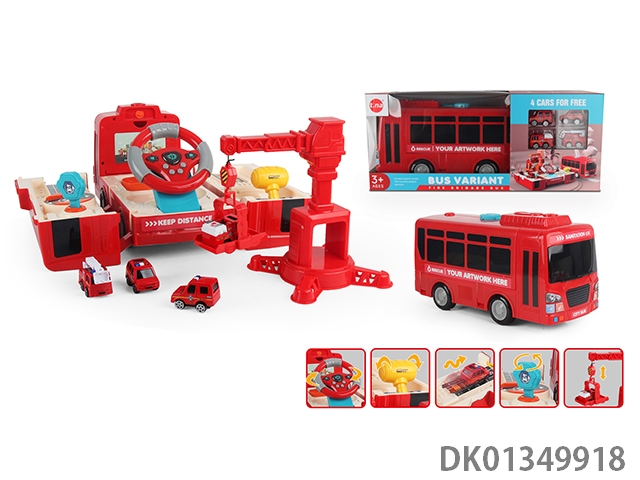 Firefighting themed steering wheel deformation suspension tower bus sound and light story car with 4 rebound alloy cars