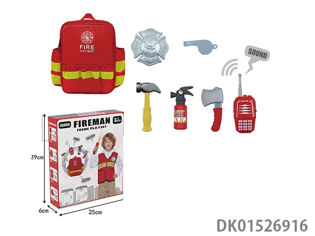 Firefighting backpack with firefighting suit, music intercom (2 aaa not included), and tools