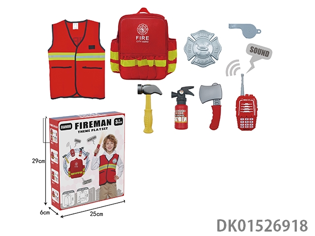 Fire hat, plastic vest, clothing, tool set