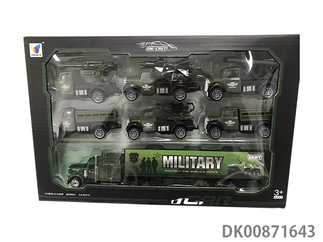5 Military huili alloy cars and 1 small and medium container set