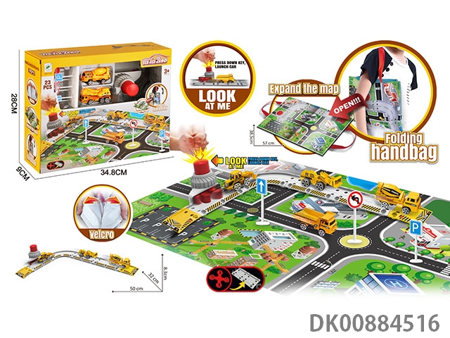 Multifunctional portable map storage bag project ejection track (alloy car) (equipped with 2 alloy cars, 1 road sign, 1 map, 1 handbag, 23pcs)