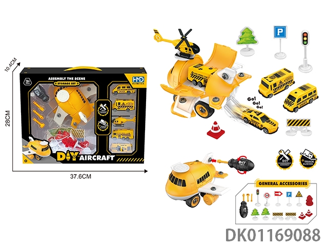 <Transformation car parking lot engineering series>equipped with 1 alloy aircraft and 1 alloy car