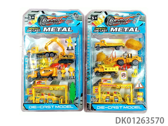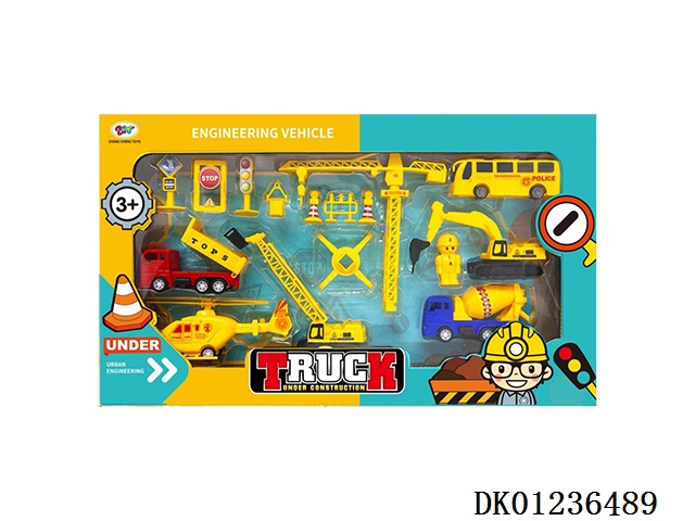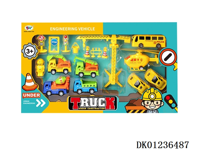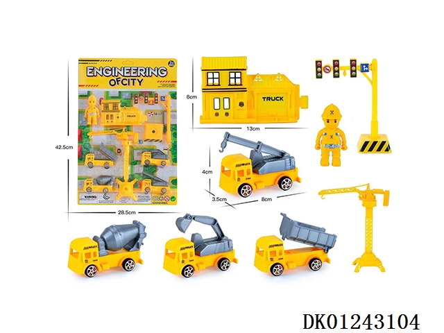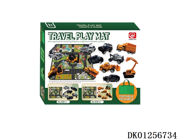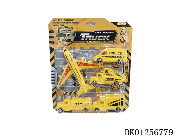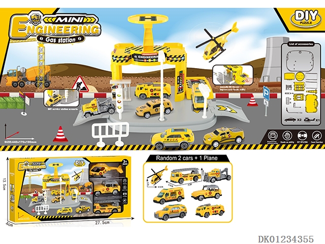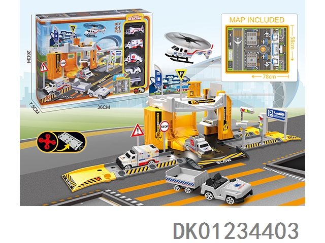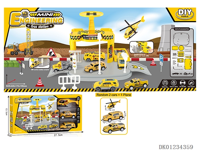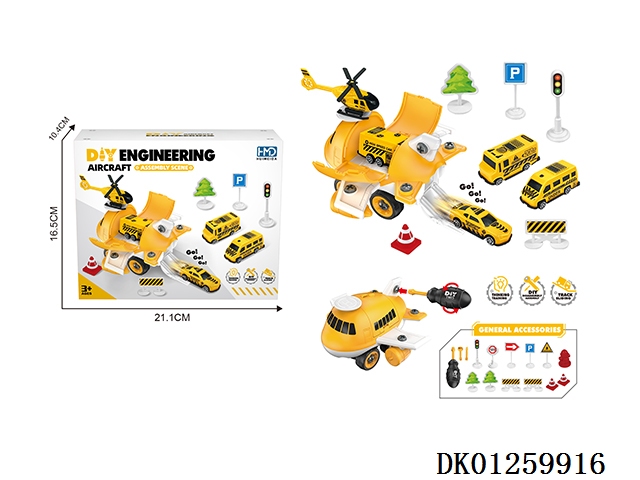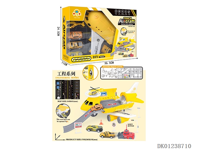 Engineering airport track set (equipped with 4 plastic cars, 1 aircraft, and 8 road signs)