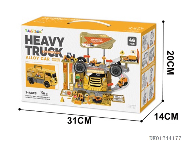 Guojiajia storage alloy engineering parking lot (equipped with 1 alloy car) (equipped with 1 set of road signs) (46 pcs)