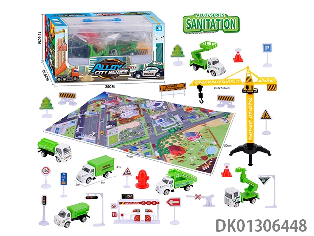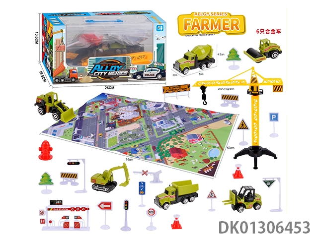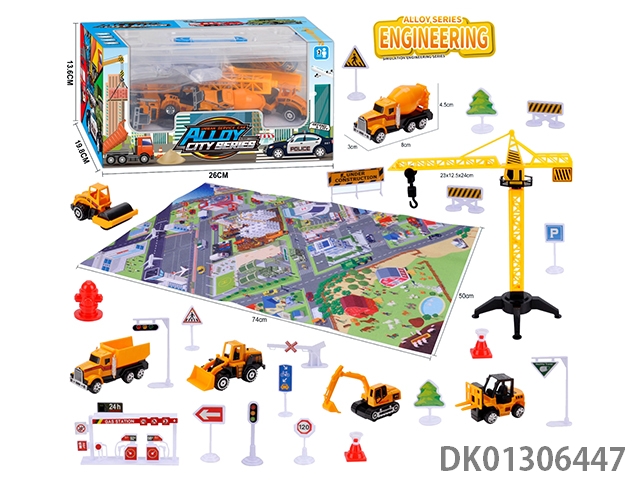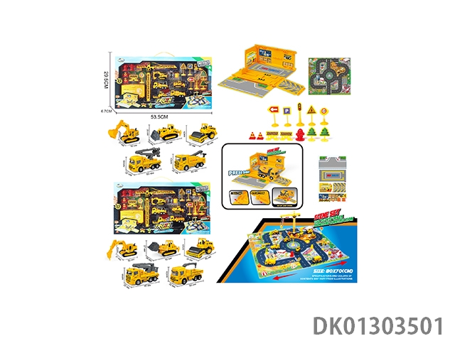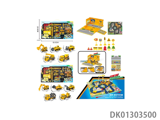 1 Construction vehicle with gas station, engineering road signs, engineering inertia vehicle set, zhuang