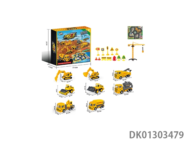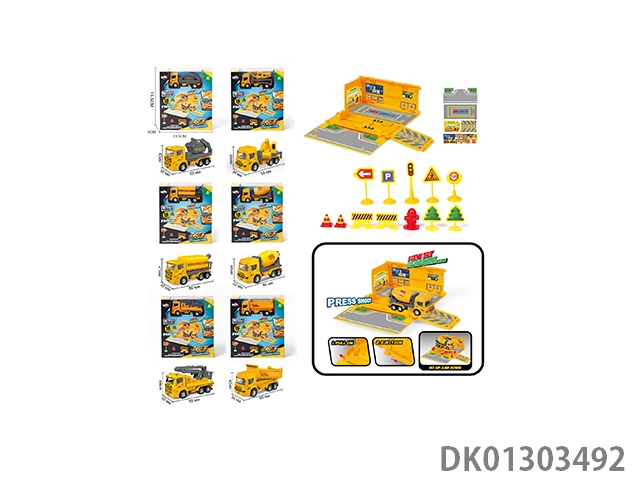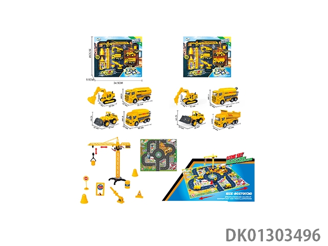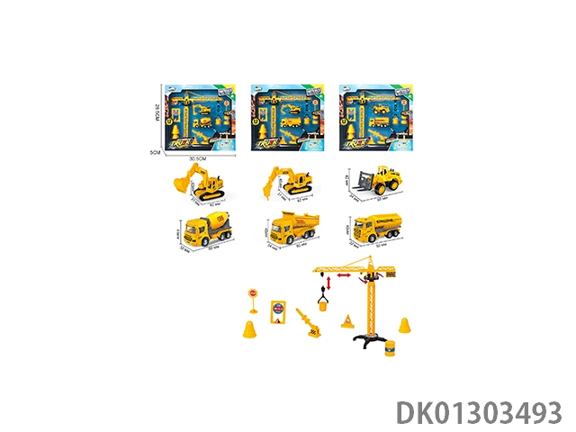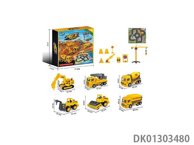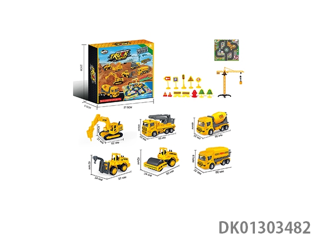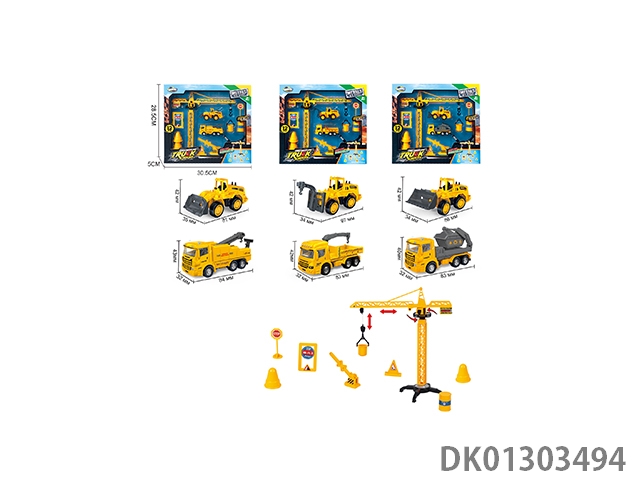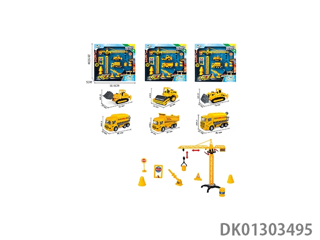 1: 64 Engineering alloy truck, suspension tower, road sign set (3 mixed models)