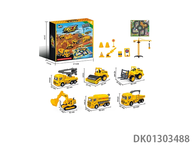 1: 64 Engineering alloy car set b/6 vehicles (tower/road signs/maps)