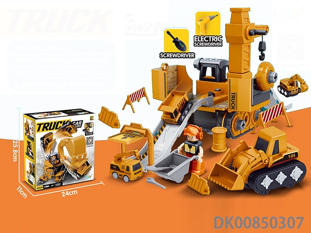 Large square box with electric drill disassembly and excavation engineering vehicle