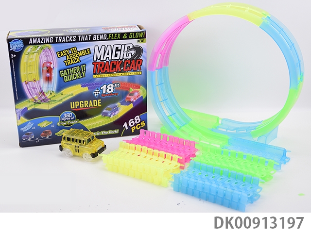 360 Rotating track 7.5cm luminous track light transparent school bus (168pcs)