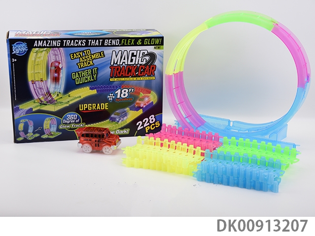 360 Rotating track 8.5cm luminous building block track light transparent school bus (228pcs)