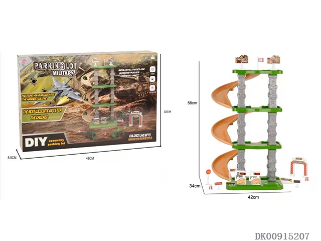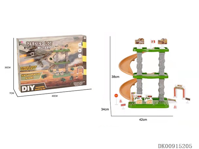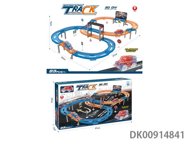 Diy puzzle building block assembly scene electric light racing set parking lot 68pcs