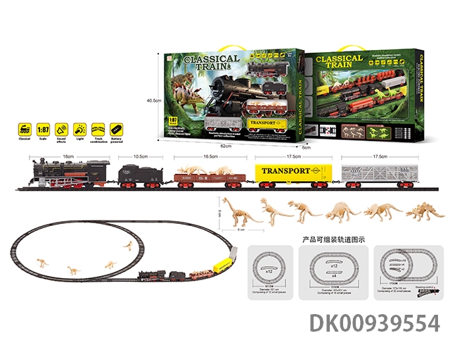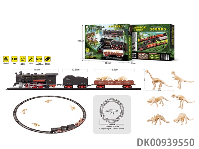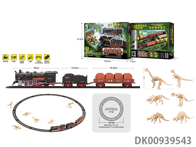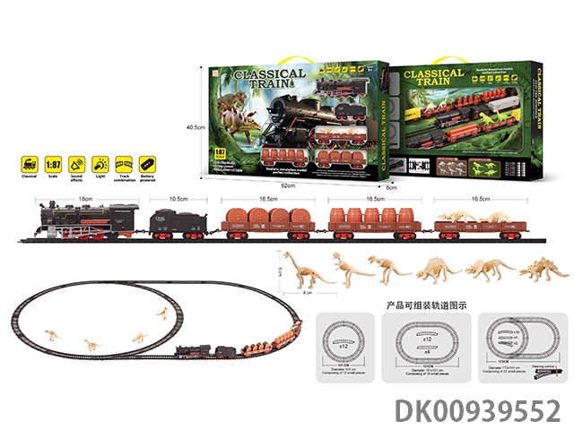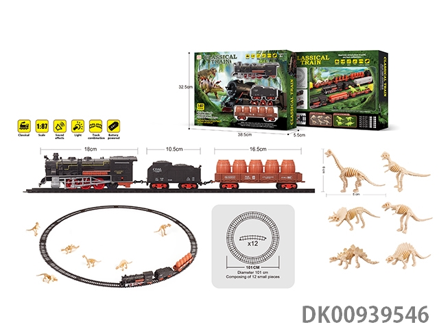 1: 87 Dinosaur bones retro electric train track light music 43pcs