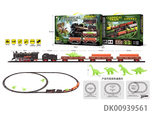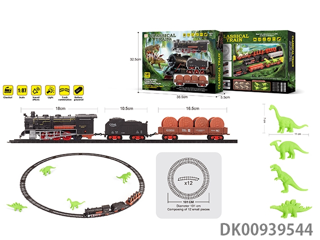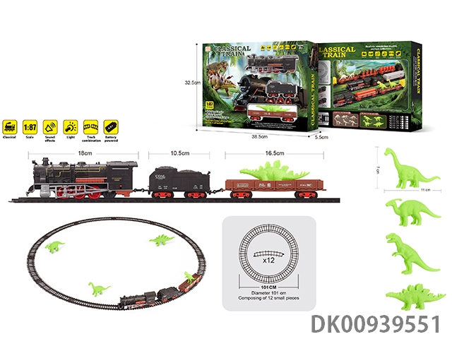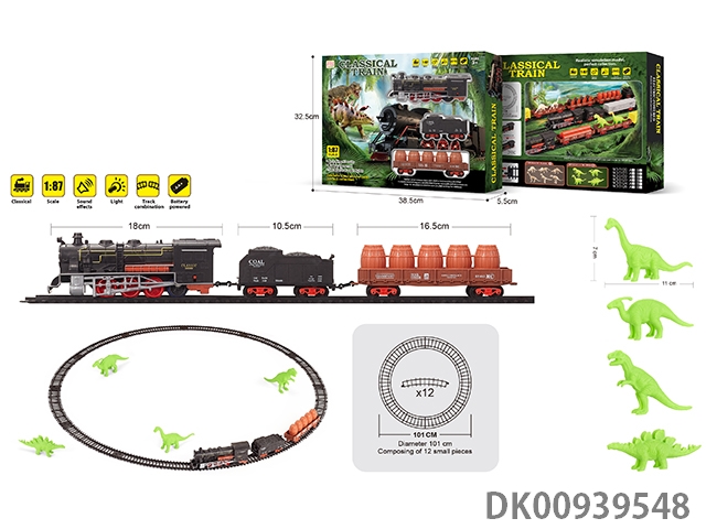 1: 87 Dinosaur retro electric train track light music 35pcs
