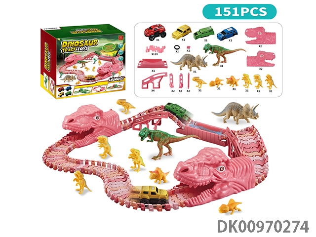 Jurassic world 3: rule - pink dinosaur assembly track electric vehicle (the electric vehicle can replace the car shell, 140 track pieces, 2 dragons) the electric vehicle needs 1 aaa battery, and does not pack electricity