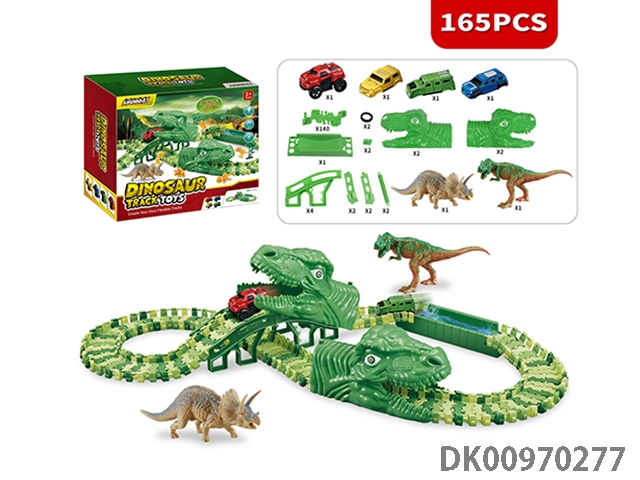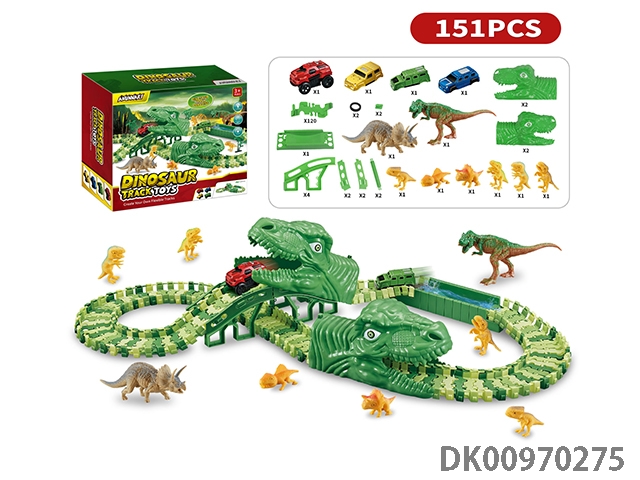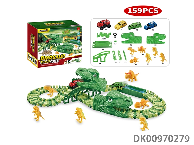 Jurassic world 3: rule - off-road dinosaur assembled track electric vehicle (the electric vehicle can replace the car shell, 130 track pieces, 6 small dragons) the electric vehicle needs 1 aaa battery, and does not pack electricity