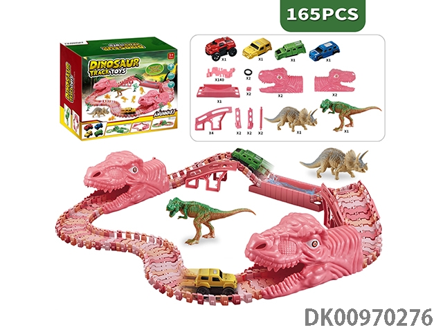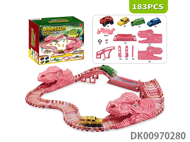 Jurassic world 3: rule - pink dinosaur assembled track electric vehicle (the shell of the electric vehicle can be replaced, and the track piece is 160 pieces). the electric vehicle needs 1 aaa battery, and does not pack electricity