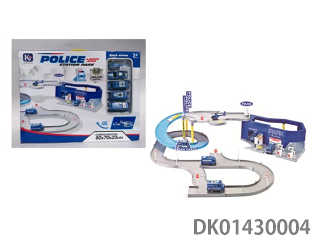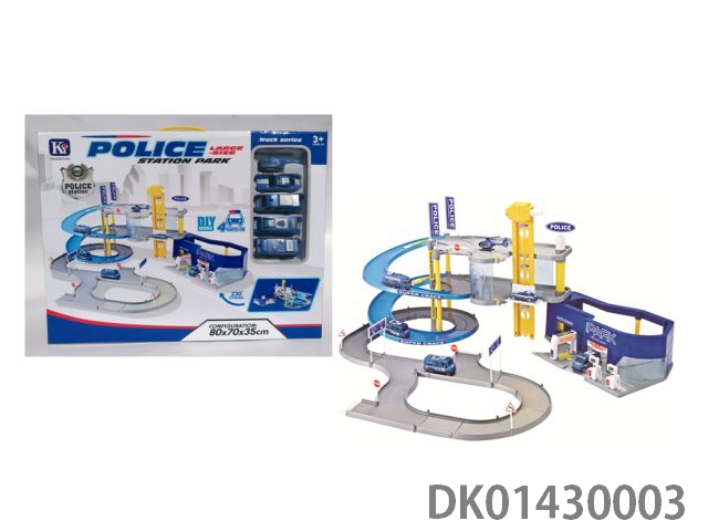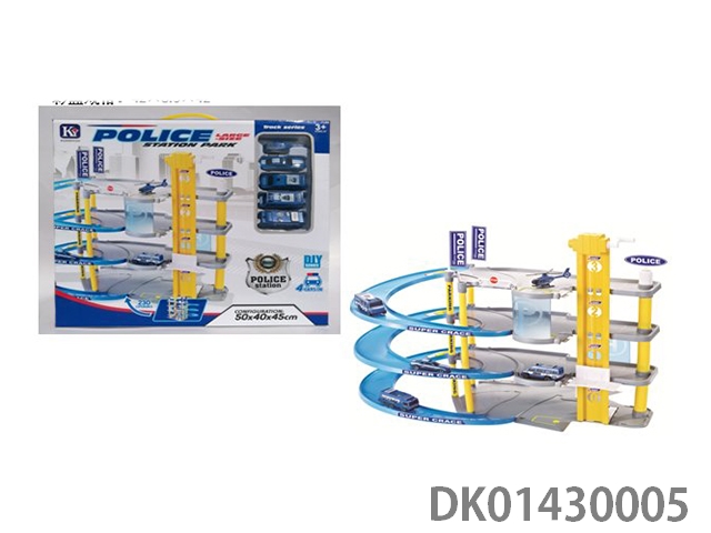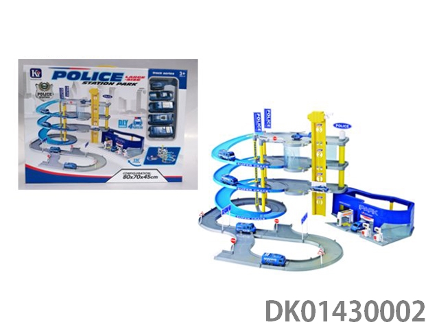 Blue super large children’s city police parking lot building parent child interaction diy puzzle toy rail car