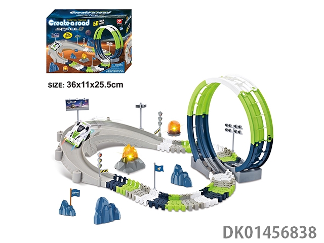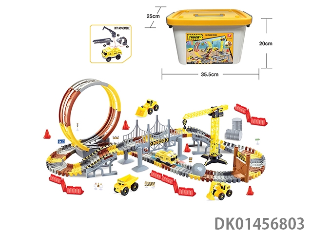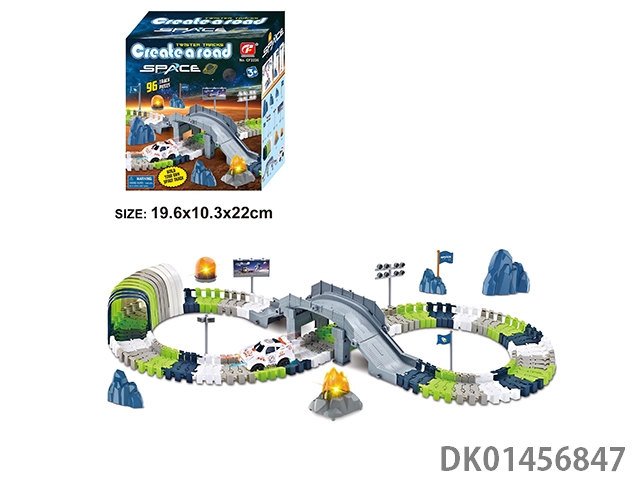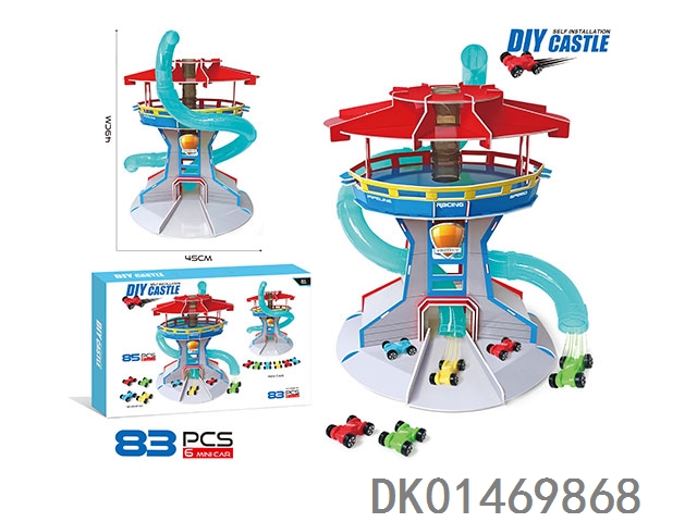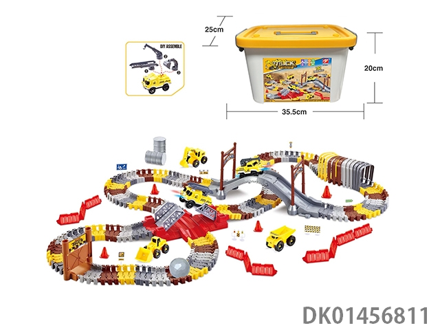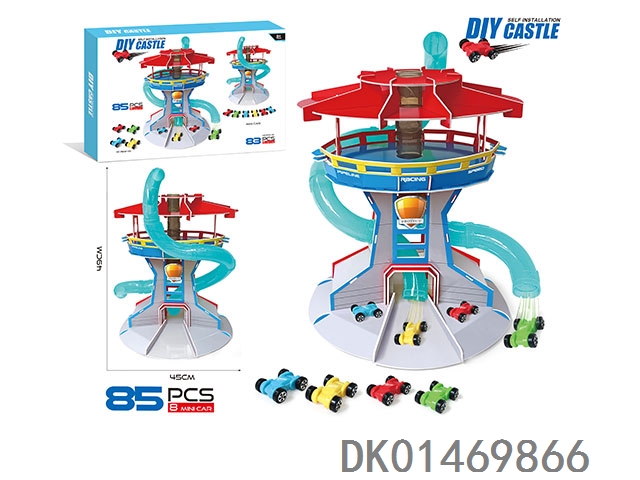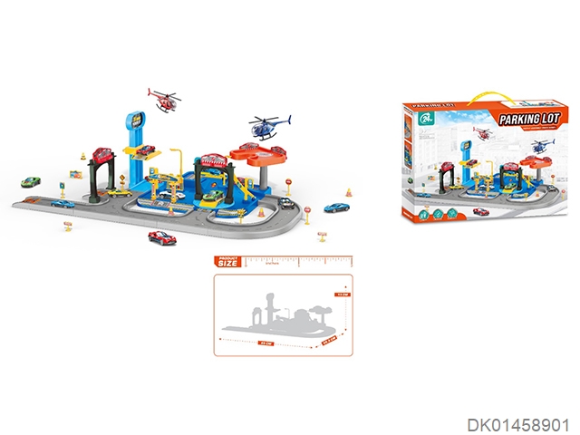 Puzzle assembly track parking lot with 1 alloy airplane and 2 alloy cars