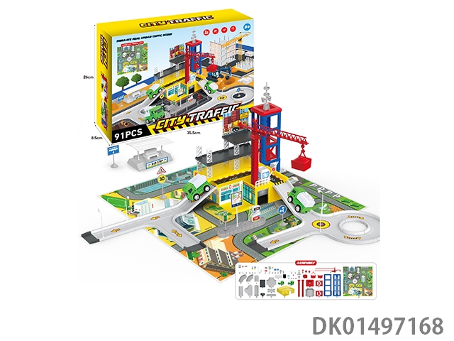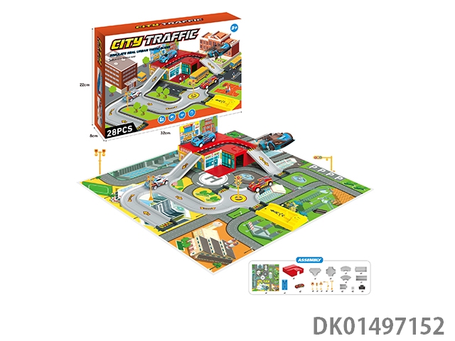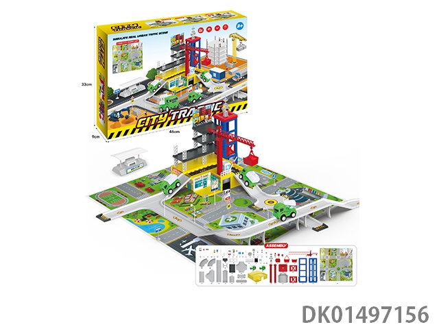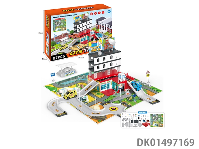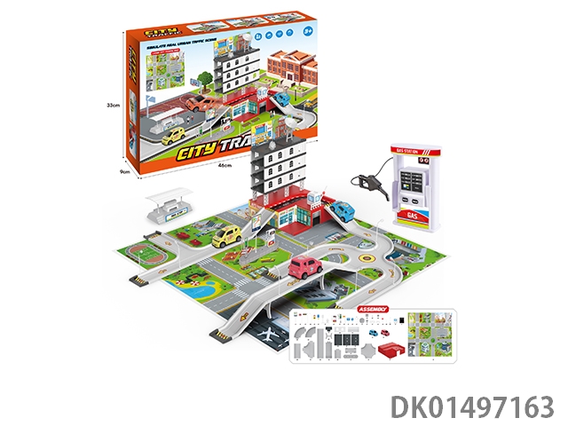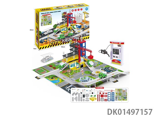 Engineering track scene diy kit (with gas station model and 2 regenerative engineering vehicles)