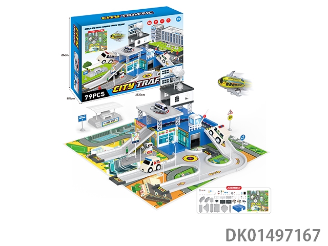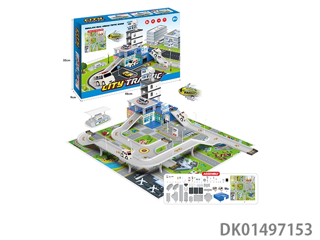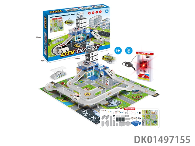 Police track scene diy kit (with gas station lights, music, 2 regenerative cars, and 1 regenerative airplane)