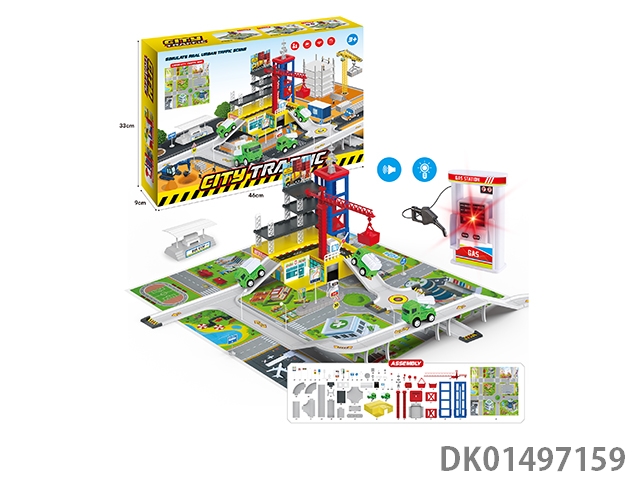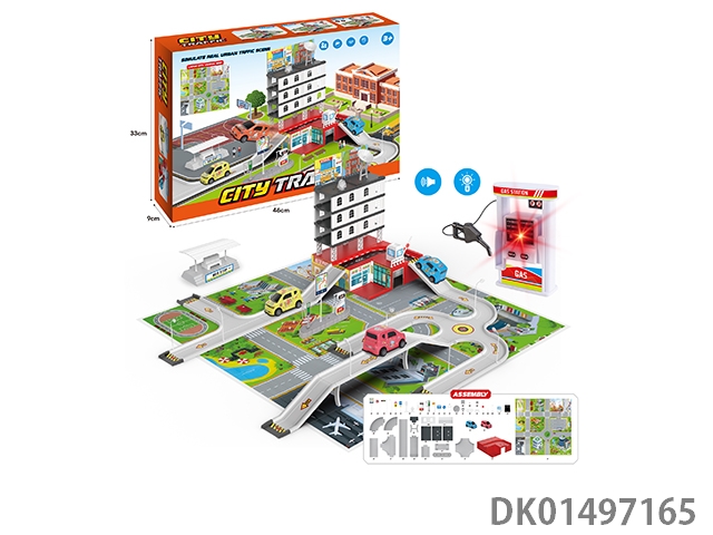 Engineering track scene diy kit (with gas station lighting, music, and 2 regenerative engineering vehicles)