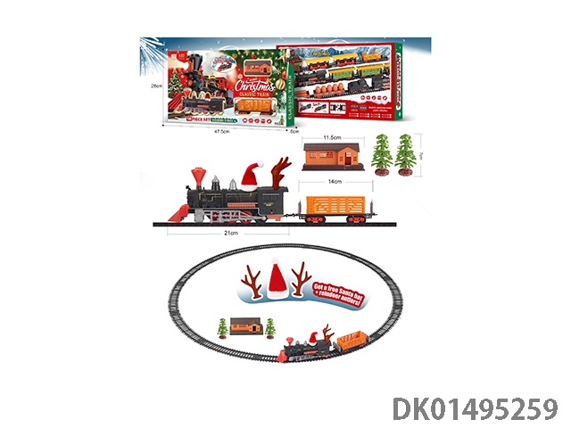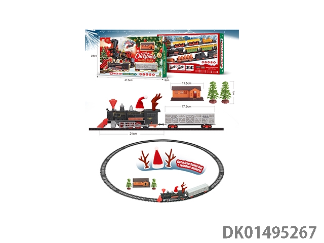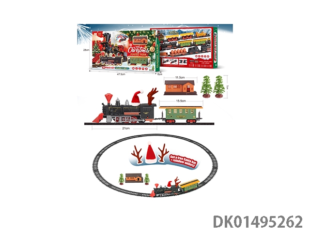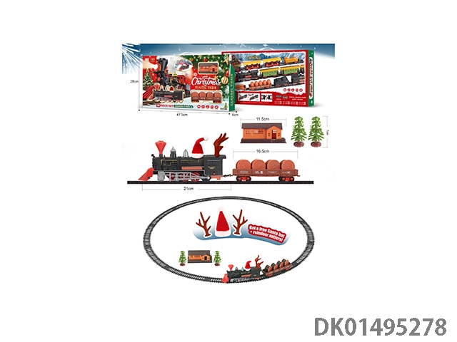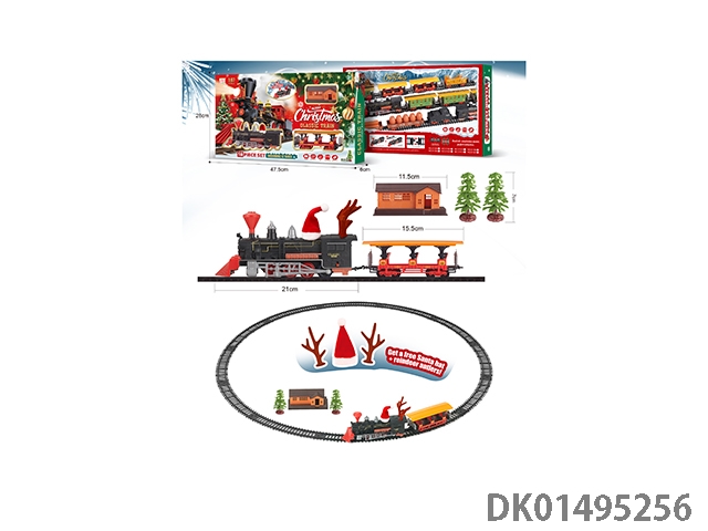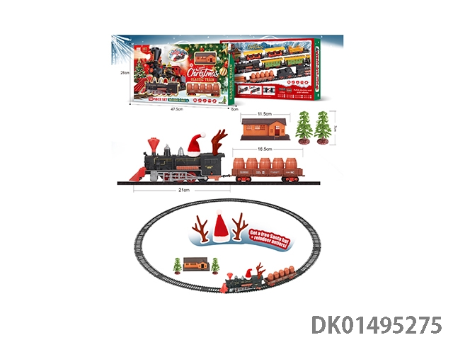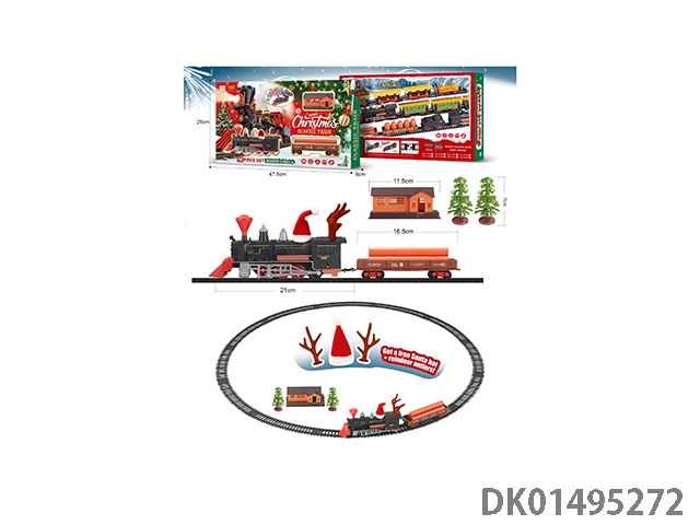 Christmas train track, christmas tree, christmas hat, reindeer antlers 1:87, classical electric train track, lights, music