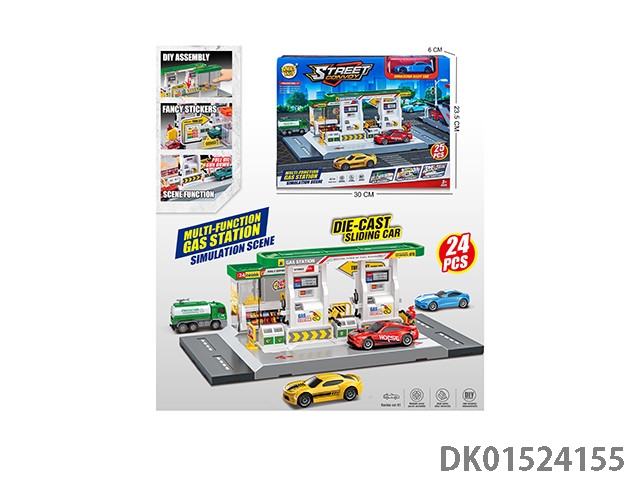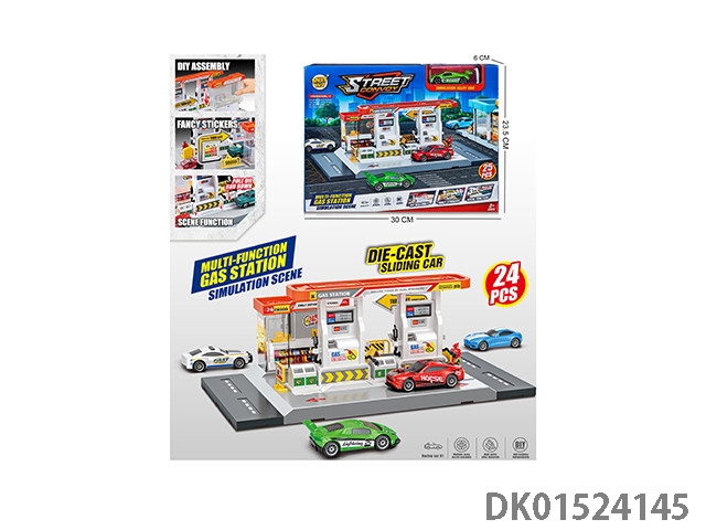 City gas station with 1 alloy car (parking lot)