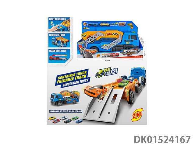 Light and music catapult folding container truck with 2 alloy cars (including 3 ag13s)