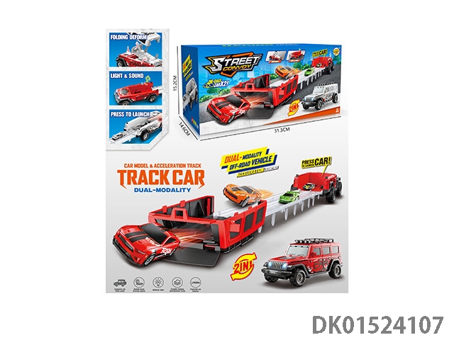 Catapult storage competitive off-road vehicle, transformable rail car with lighting and music function, equipped with 2 alloy cars (including 3 ag13s)