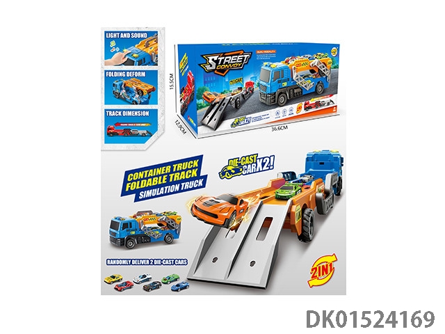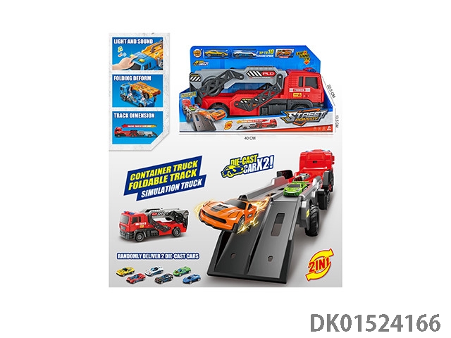 Light and music catapult folding container truck with 2 alloy cars (including 3 ag13s)
