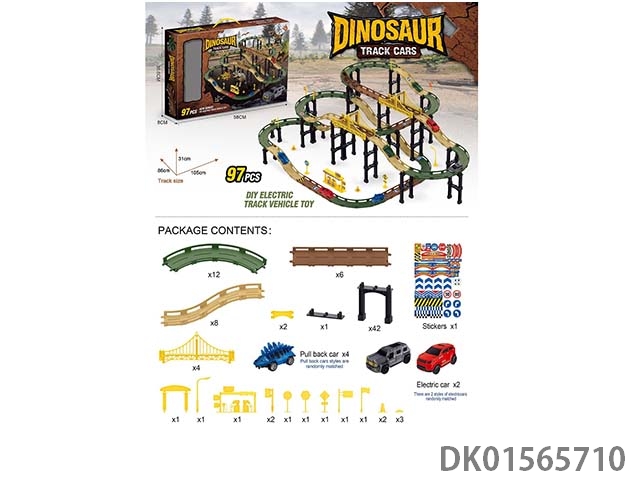Gravity dinosaur diy colorful adhesive disc rail car (electric colorful lights) 215pcs