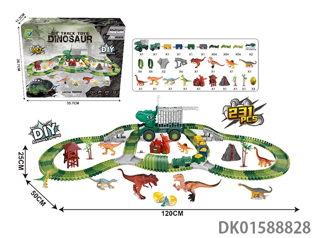 Dinosaur track storage engineering vehicle configuration: 231pcs electric train