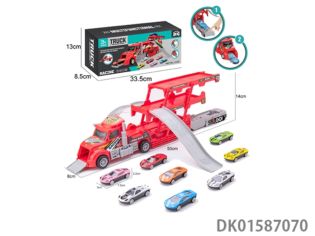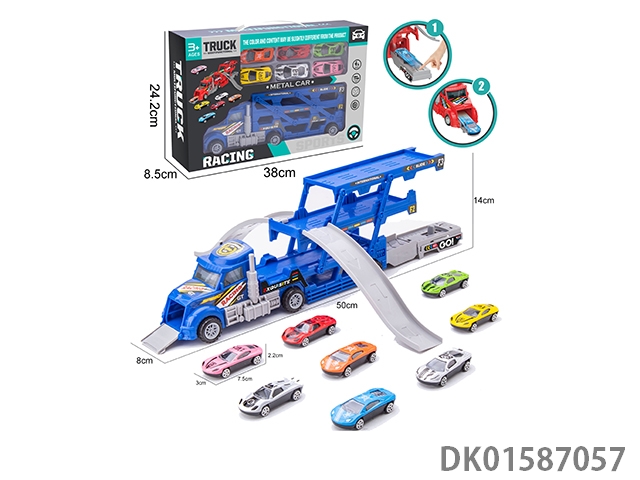 Folding catapult container truck, alloy urban rail scene (container truck mixed with red and blue colors)