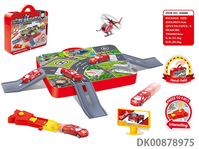 The track parking lot is equipped with one aircraft and one car (fire ejection)