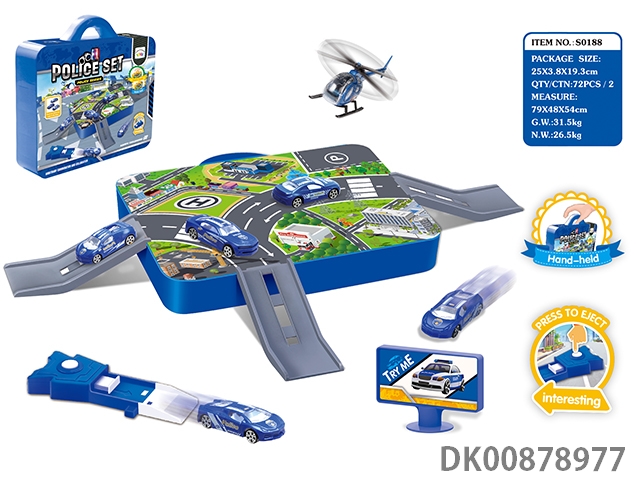 Track parking lot is equipped with 1 aircraft and 1 car (police ejection)