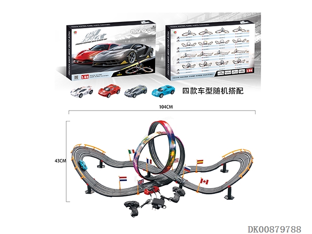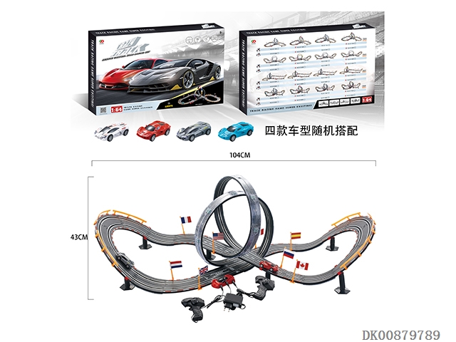 Electric rail car (two mixed sports cars, track length 455cm, with transformer control gun) printed striped track board