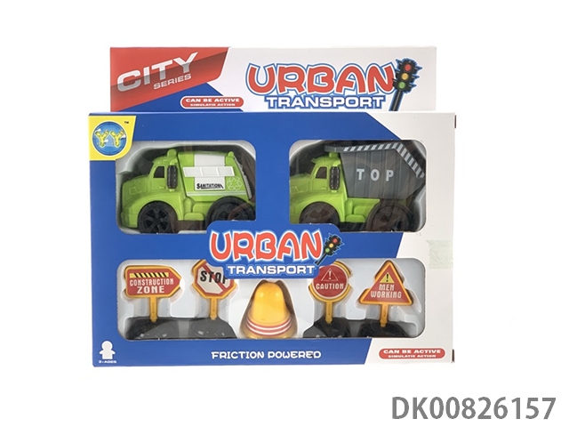 Two american environmental inertia cars and roadblocks
