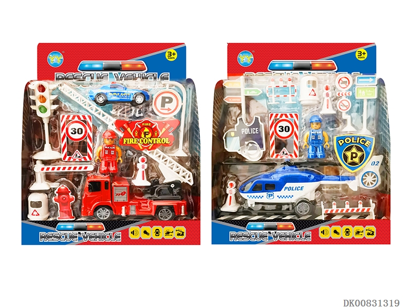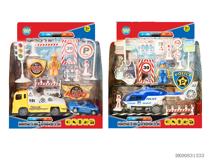 6-Inch rescue vehicle / 6-inch helicopter and roadblock scene (mixed)