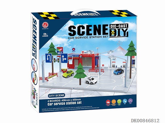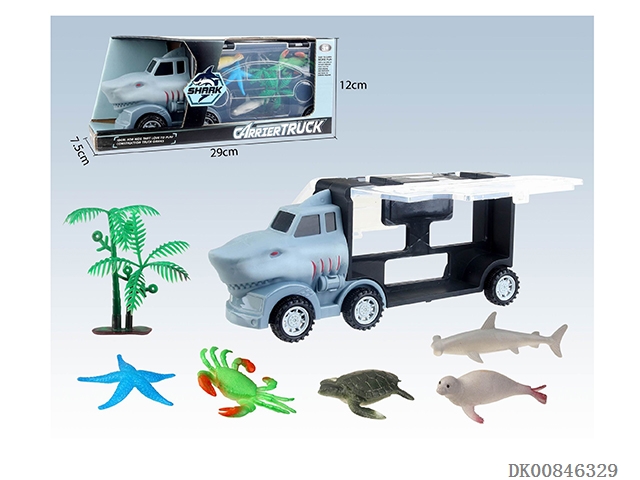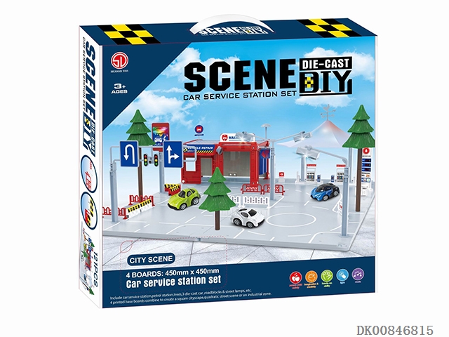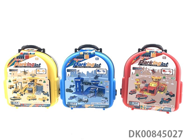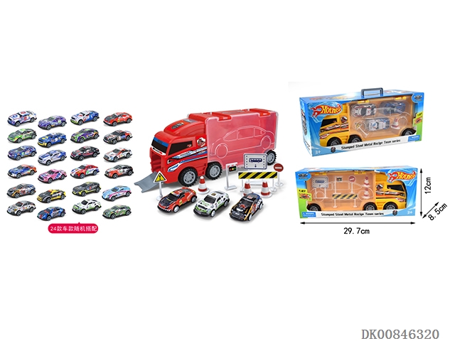 Three color ejection transport vehicle (with 3 6cm return metal racing cars / 8 road signs)