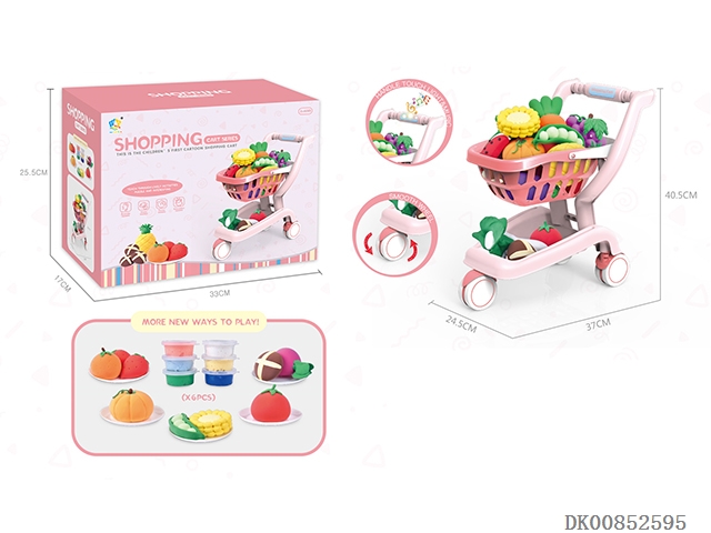 Parent child interactive shopping cart inductive sound and light 7-piece set (including 6 cans of clay accessories) (women’s)