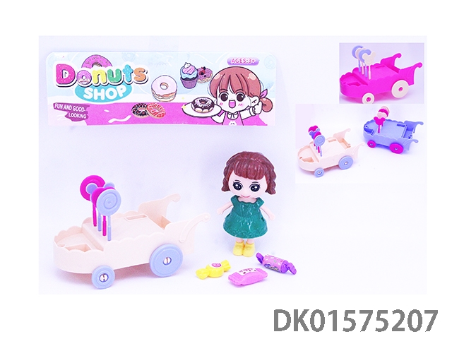 Little girl and snack cart set (3-color mixed)