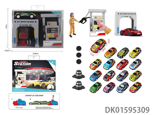 Gas station car wash scene combination with catapult 1:64 alloy racing car