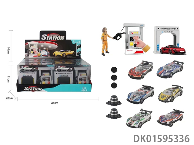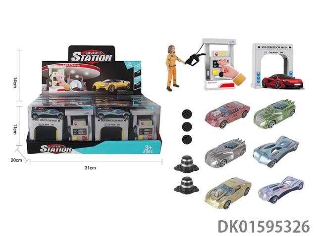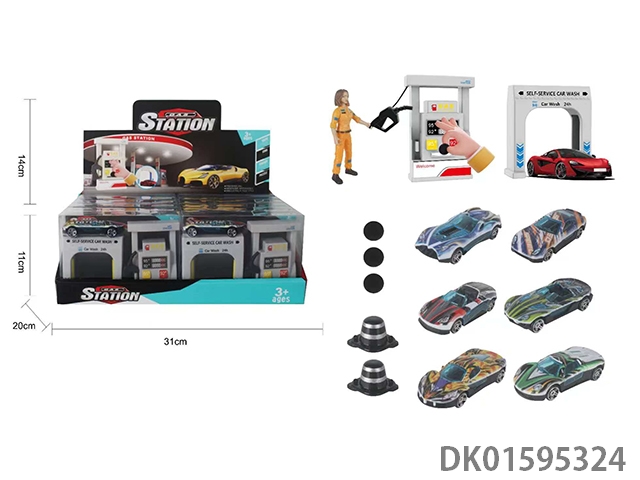 1: 64 Gas station car wash scenes, 6 uv sports cars (12pcs/box)