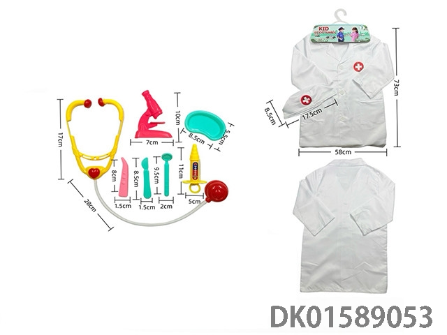 Cross border children’s diy clothing role-playing round label doctor’s uniform and 7-piece set (thick version) powder