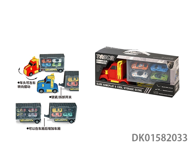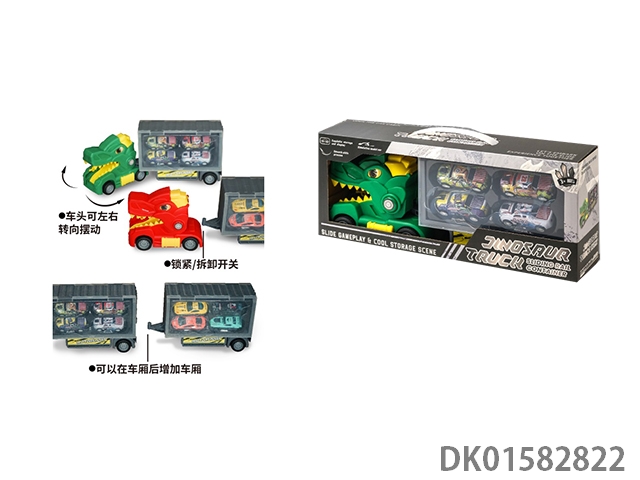 Dinosaur trailer truck slide rail storage container truck (the front of the truck can be turned and multiple compartments can be spliced, paired with a 4-alloy truck)
