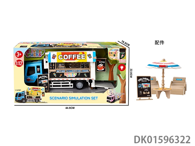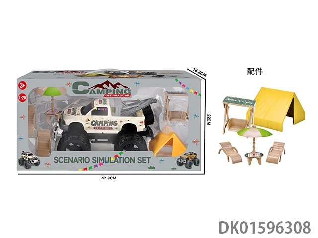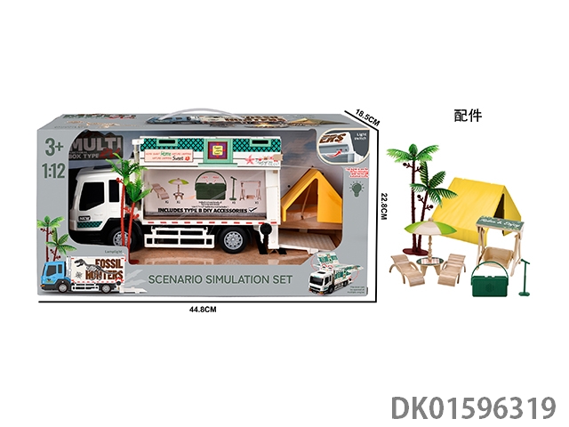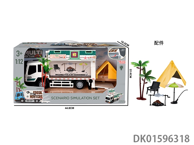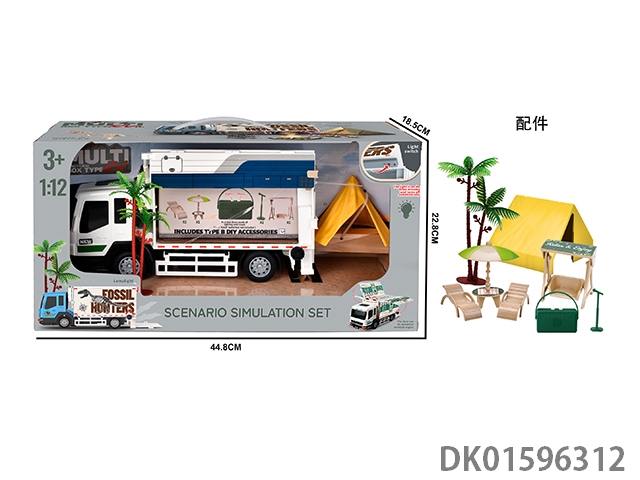 Combination of box camping rv and table, chair, swing, speaker