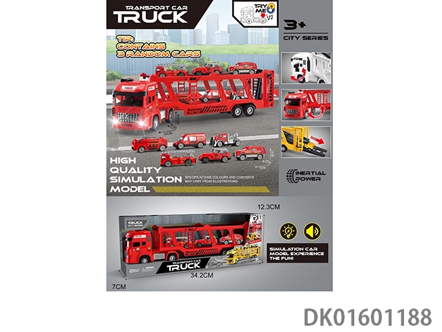 High quality simulation model double-layer fire transport truck (with sound, light, music, electric package AG13 3) randomly equipped with 3 vehicles